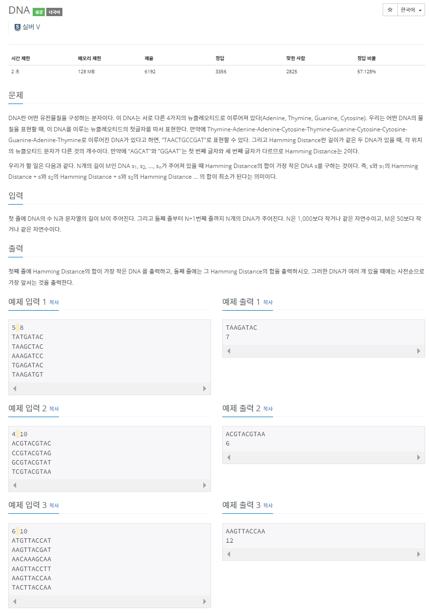 완전탐색 + 구현 문제였다. 문자들의 각 n번째 자리마다 Hamming Distance가 최소인 문자를 찾으면 되는 문제다.